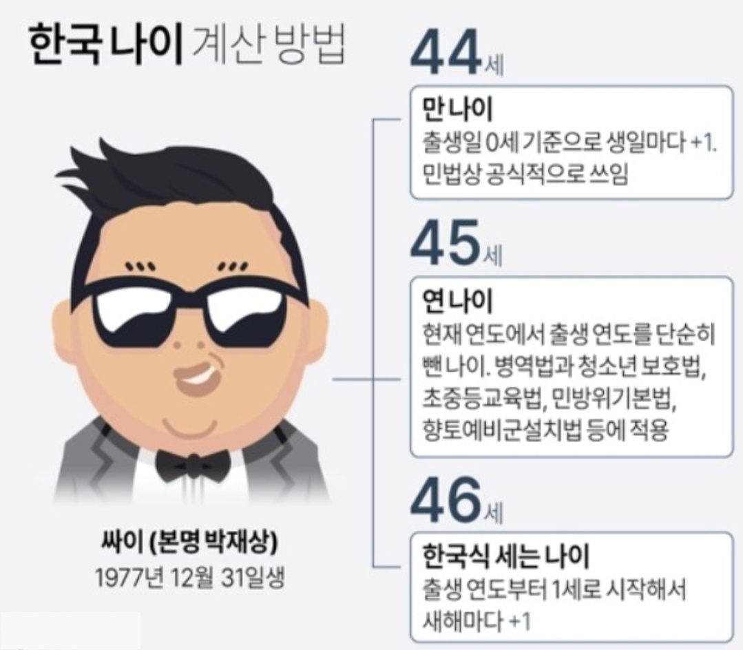 우리나라에서는 태어나자마자 1살로 계산하는 '한국식 나이'인 '세는 나이'가 통상적으로 사용되어져 왔습니다. 내년부터는 서류를 작성할 때 나이의 기준을 적시해주지 않으면 작성자는 어떤 나이를 적어야 하는지 혼란이 생길 수 있겠습니다.