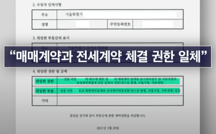 제주에서 숨진 빌라왕 정모씨는 사망하기 한 달 전 강서구의 빌라 2채를 사들였습니다. 그러나 매매계약은 정씨가 아닌 앞서 말씀드렸던 신씨 업체의 직원이 계약을 진행하였습니다. 정씨가 강서구의 인근 오피스텔 6채를 사들일 때에도 분양업체가 계약을 대신 했는데 이 때에도 매수인 측에 대리인이 등장했습니다. 분양업체 관계자는 계약을 진행할 때 정씨와 법인 직원이 함께 찾아와서 위임장과 인감, 공인인증서를 넘겨줘 계약을 진행했다고 밝혔습니다. 정씨가 사망 한달 전 오피스텔 6채를 사들이고 사망 당일에도 보증보험신청 전자서명까지 하게 된 배경입니다. 신 씨의 법인에서 이렇게 위임장을 들고 다니며 빌라왕들을 대리한 직원은 확인된 것만 3명입니다.